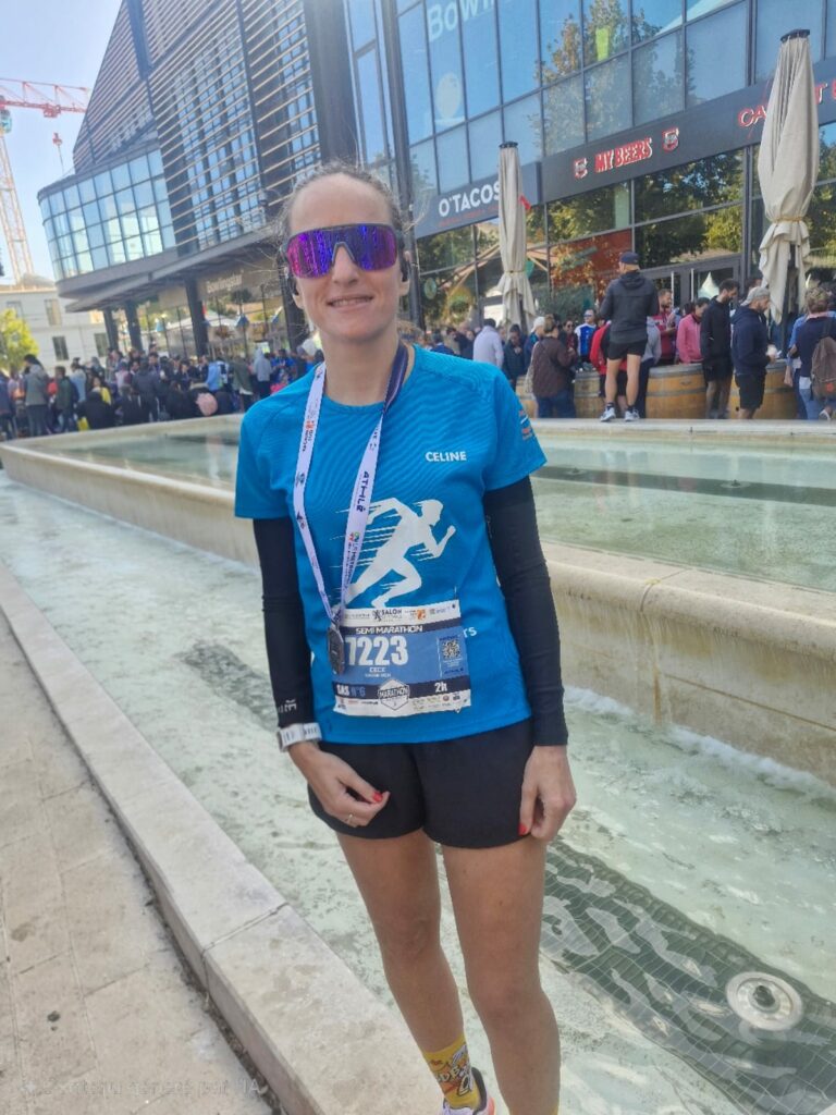 Après 3 mois de préparation suivie à la lettre avec un objectif d’allure à 5’20″/km Céline s’est élancée dimanche 5 octobre sur le semi-marathon de Salon de Provence. Un départ un peu compliqué avec une foule de coureurs très dense, mais Céline a su maintenir le rythme prévu jusqu’au 18eme kilomètre où tout s’est compliqué , du dénivelé, du vent et la fatigue qui commence à se sentir. Elle ne lâche pas et termine en 1h54’18 » soit 5’25 » au kilomètre ! Classement 1759eme / 4590 et 385eme féminine/ 1957.